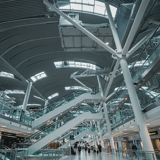 フランクフルト空港の長い通路で、吹き抜けの2階から、ブロンドの長いカーリーヘアの女性が顔を覗かせて言った。